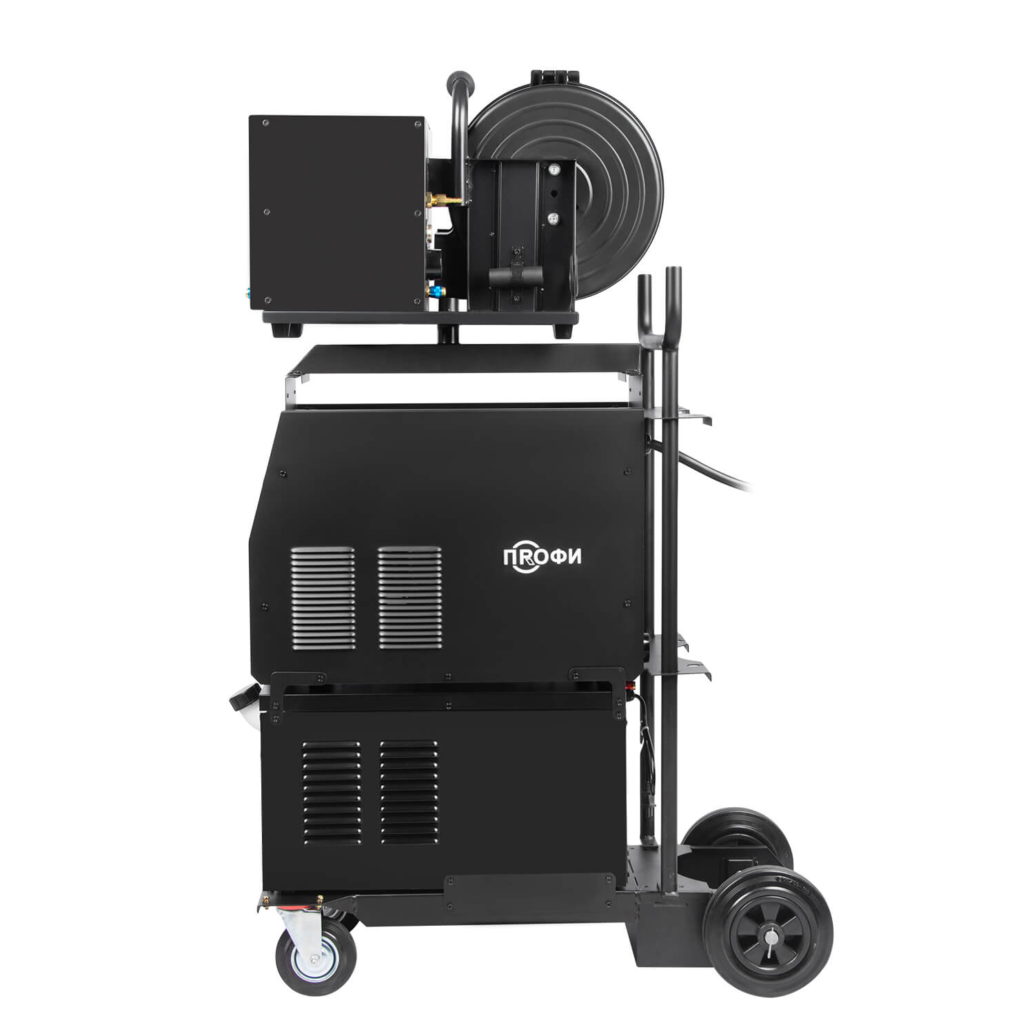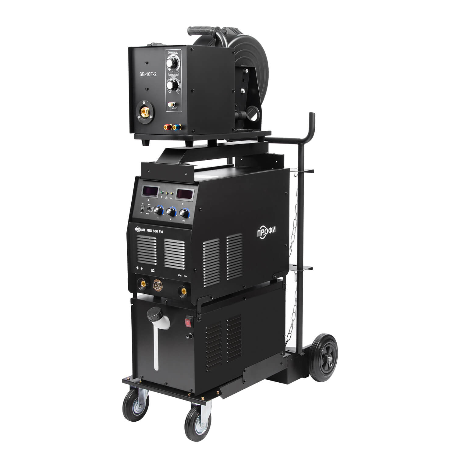Аппарат ПРОФИ MIG 500 FW поставляется в сборе блоком водяного охлаждения объемом до 10 литров и тележкой-платформой, которая обеспечивает более легкую и комфортную эксплуатацию оборудования. Тележка обладает надежной усиленной конструкцией. На нее можно установить сварочный источник, выносной подающий механизм, блок жидкостного охлаждения и газовый баллон объемом 40 литров.