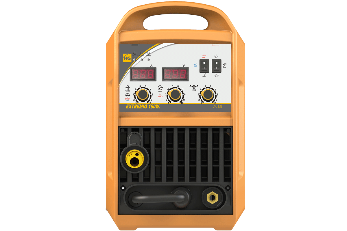 Hugong EXTREMIG 160W III - сварочный полуавтомат инверторный многофункциональный 3 в 1. Компактный, легкий, удобный для переноски, а так же при транспортировке, хранении. Корпус из листовой стали, надежно защищает внутренние элементы от повреждения. Предназначен для полуавтоматической сварки в среде защитных газов (MIG/MAG), сварки порошковой проволокой (FCAW), а также ручной дуговой сварки покрытым электродом (ММА) и аргонодуговой сварки (TIG). Аппарат имеет защиту от перегрузки, индикатор перегрева и неисправности, обеспечивая высокий уровень безопасности и надежность устройства. Так же данный аппарат имеет защиту от скачков напряжения. Высокое напряжение холостого хода обеспечивает легкость поджига сварочной дуги. Высокая стабильность сварки в реальном времени, простое, интуитивно понятное управление сварочными параметрами.