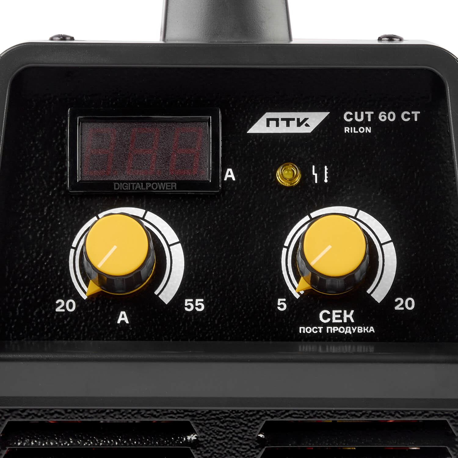 - Функция постпродувки плазменного резака CUT 55 серии воздухом после резки. Функция продлевает срок службы плазмотрона, сопла и катода. Диапазон пост продувки составляет от 5 до 20 сек.
